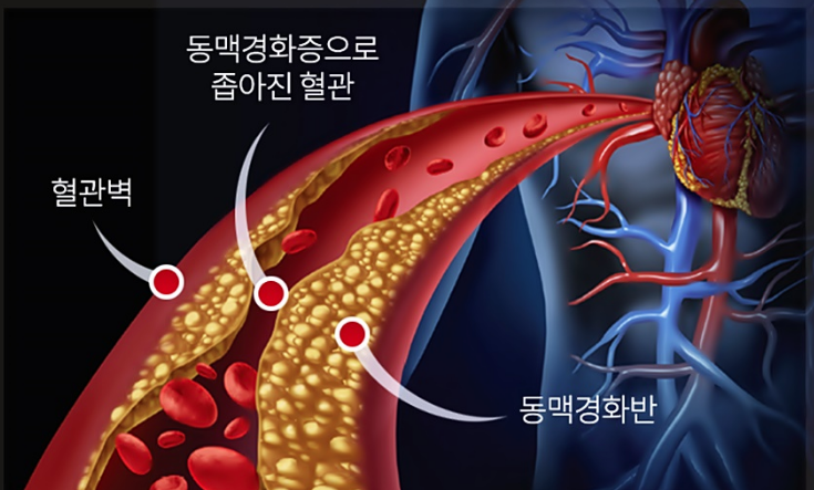 오늘은 한국인이 잘걸리는 성인병 중 대표적인 질병인 동맥경화증에 대해 알아보겠습니다. 흔히들 얘기하는 동맥경화는 고혈압과 당뇨와 함께 사망률이 가장 높은 성인병으로 알려져 있습니다. 동맥경화증에 의한 성인 사망률은 미국, 일본의 경우 약 50%이고 한국의 경우 35%입니다. 평상시 방심하다가 갑자기 발생할 수 있는 위험한 질병이기에 초기증상 및 예방법 그리고 좋은음식들을 함께 알아보도록 하겠습니다. 먼저 동맥경화증이 어떤 질병인지 알아보겠습니다.